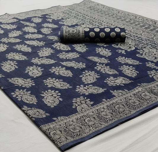 EKKTARA Saree For Women Air Force Blue Chikankari Weaving Saree