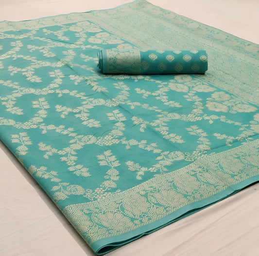 EKKTARA Saree For Women Turquoise Chikankari Lucknowi Handwowen Saree