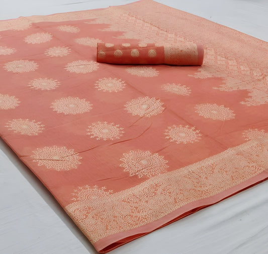 EKKTARA Saree For Women Light Orange Chikankari Lucknowi Handwowen Saree