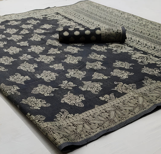 EKKTARA Saree For Women Perl Grey Linen Silk Chikankari Border Weaving Saree