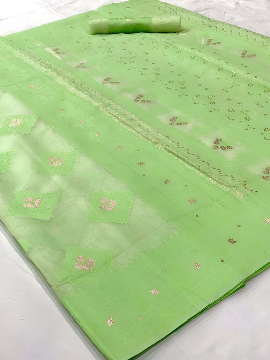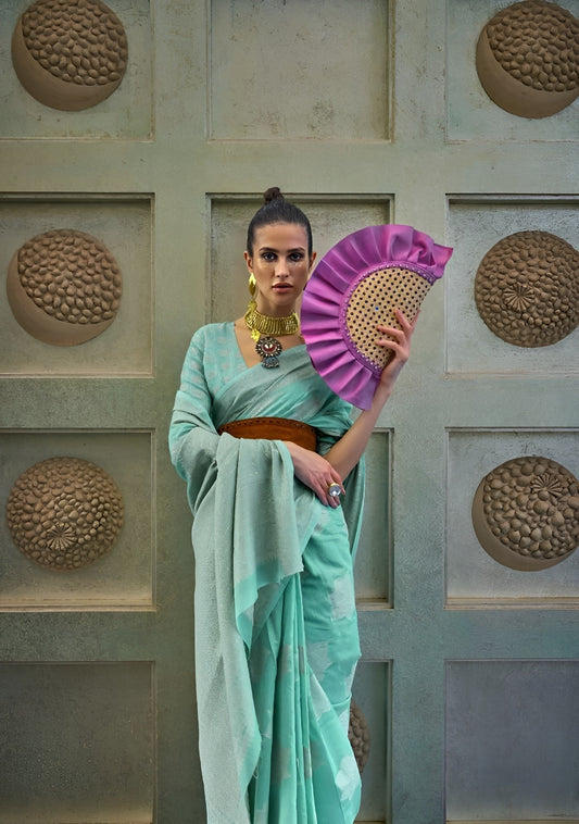EKKTARA Saree For Women Mint Green Chikankari Lucknowi Weaving Saree