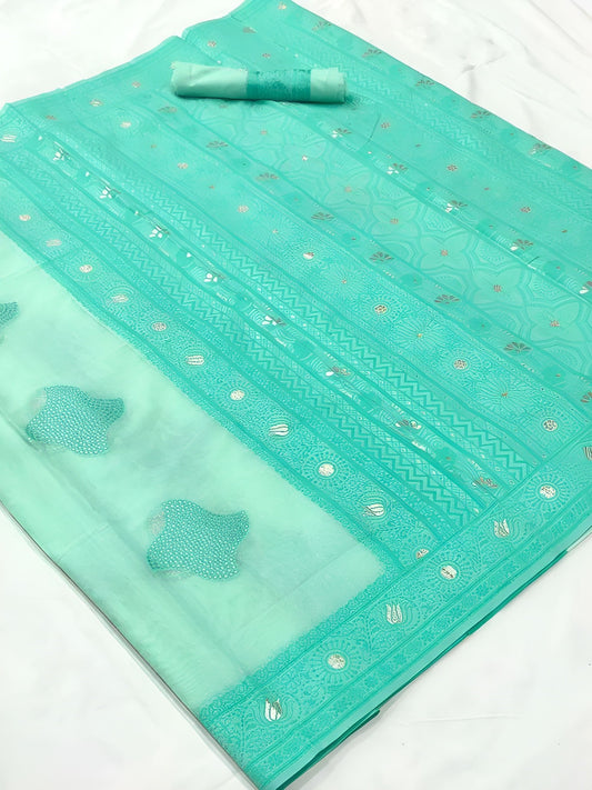 EKKTARA Saree For Women Celeste Turquoise Chikankari Lucknowi Weaving Saree