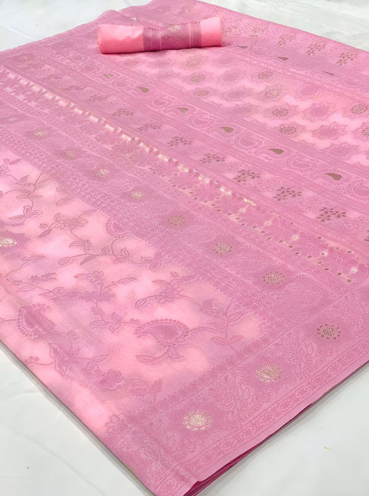 EKKTARA Saree For Women Blush Pink Chikankari Lucknowi Handwowen Saree