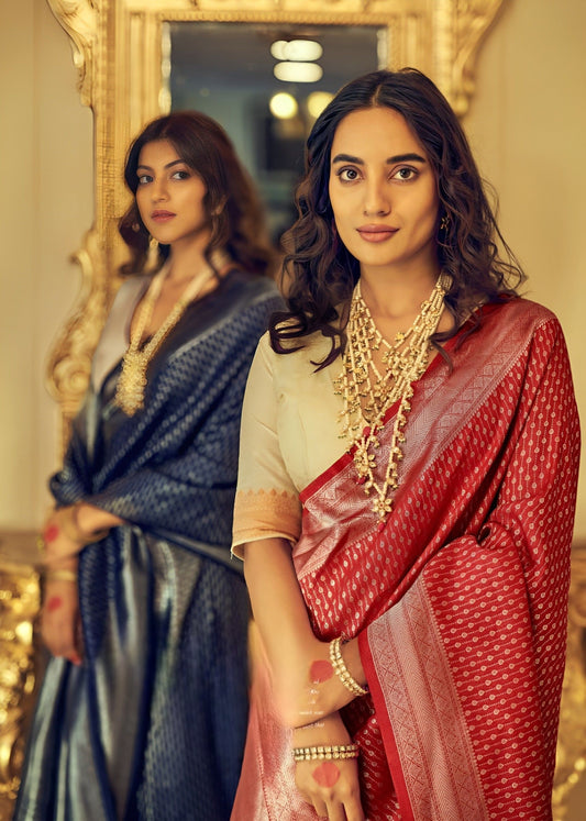 EKKTARA Saree For Women Red Colour Kanjivaram Zari Silk Saree With Unstitched Blouse