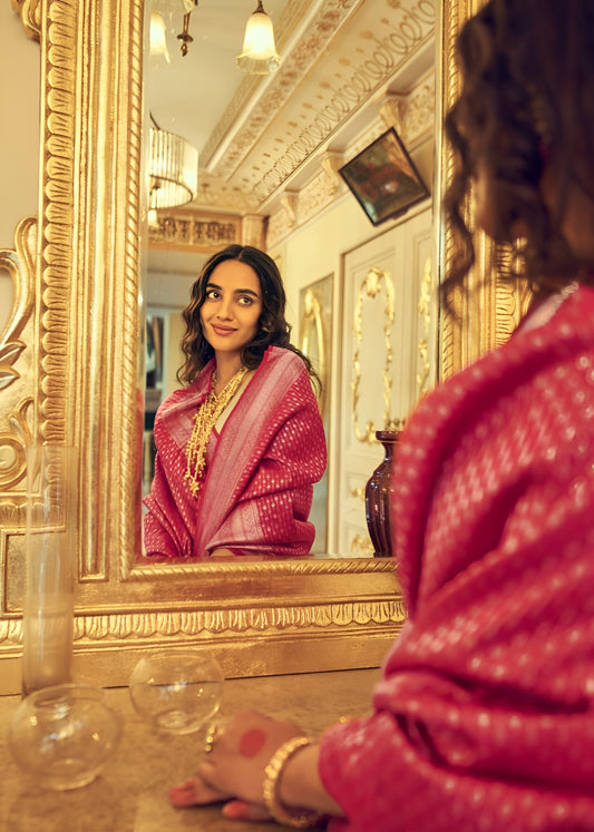 EKKTARA Saree For Women Fuchsia Pink Kanjivaram Saree