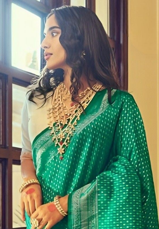 EKKTARA Saree For Women Green Colour Kanjivaram Zari Silk Saree With Unstitched Blouse