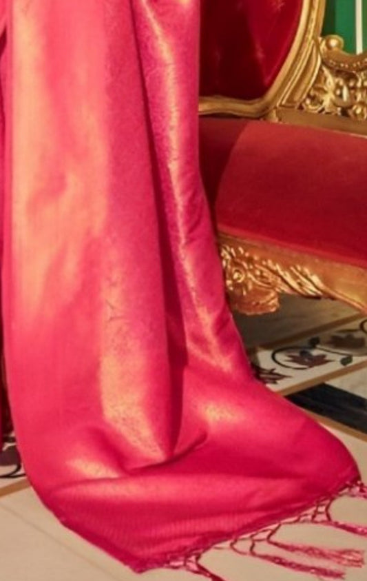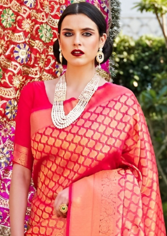EKKTARA Saree For Women Rose Red Colour Handloom Weaving Kanjivaram Saree With Unstitched Blouse