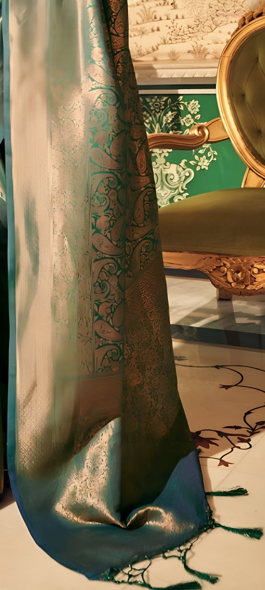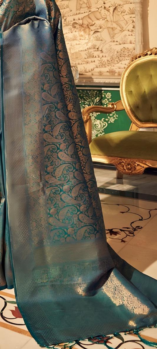 EKKTARA Saree For Women Dark Turquoise Kanjivaram Saree