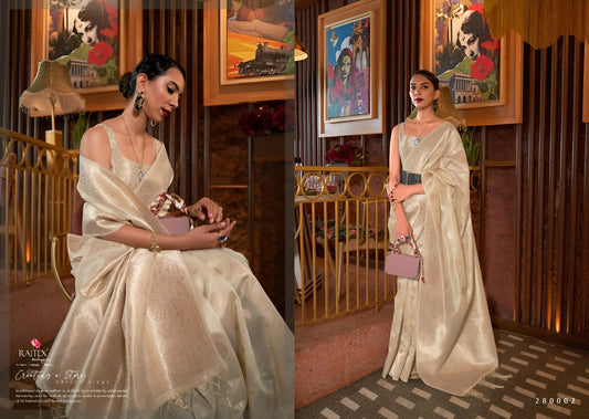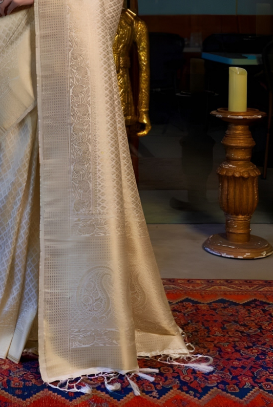 EKKTARA Saree For Women Creamy Tussar Silk Weaving Saree
