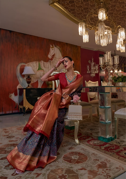 EKKTARA Saree For Women Multi Blue Colour Kashmiri Chaap Handloom Weaving Silk Saree With Unstitched Blouse