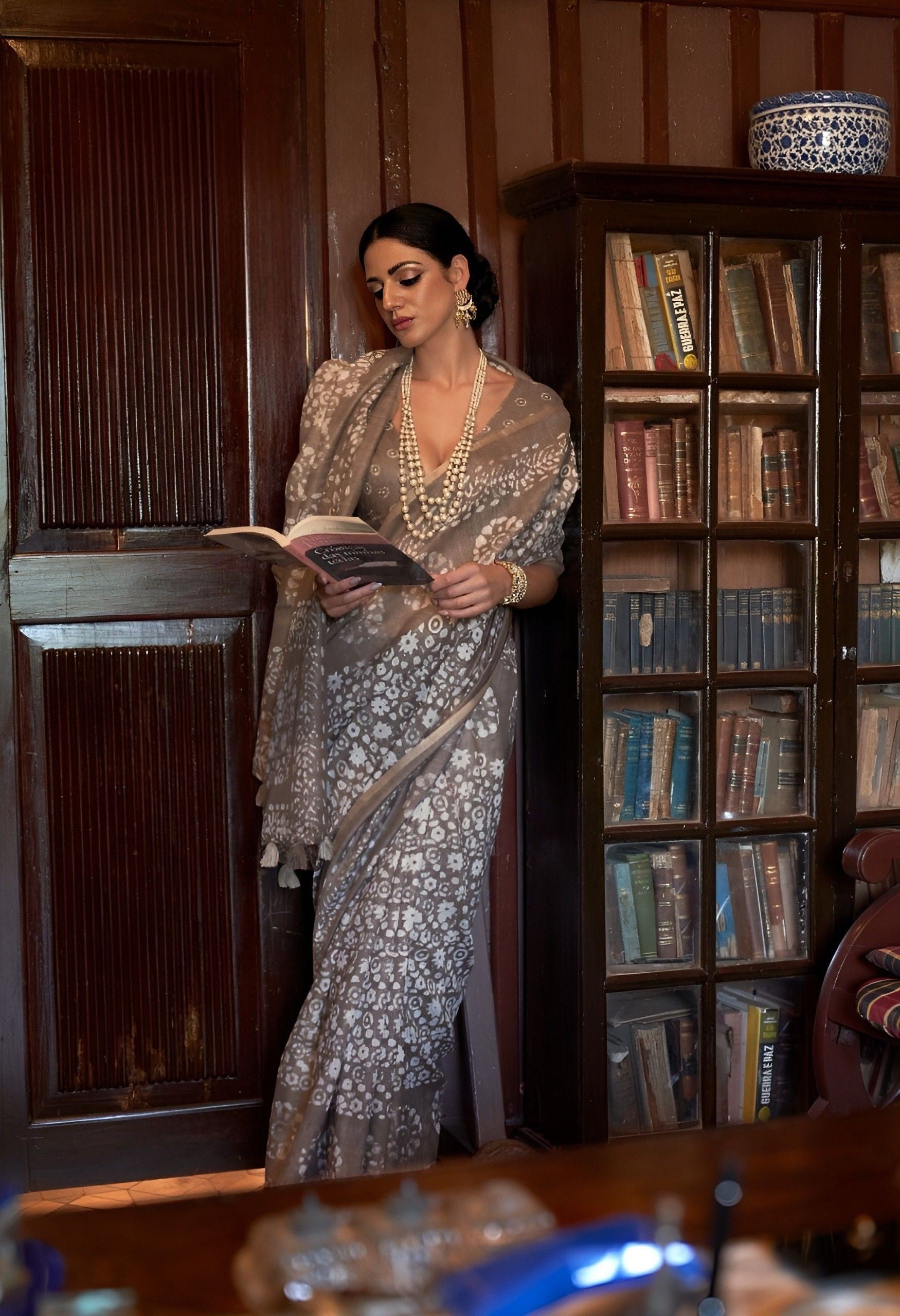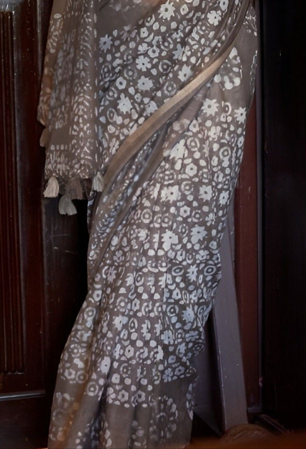 EKKTARA Saree For Women Light Brown Colour Soft Linen Cotton Saree With Unstitched Blouse