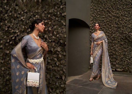 EKKTARA Saree For Women Midnight Grey Satin Silk Handloom Weaving Saree