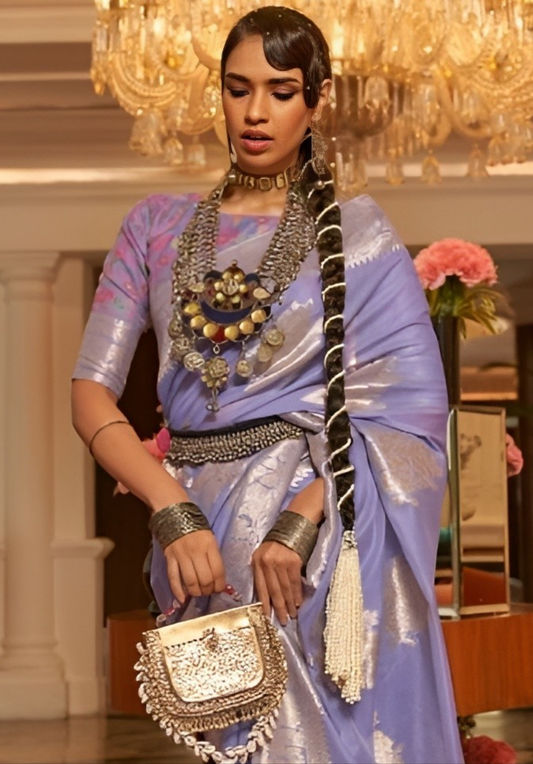EKKTARA Saree For Women Light Purple Colour Handloom Weaving Silk Saree With Kashmiri Pallu & Kashmiri Unstitched Blouse