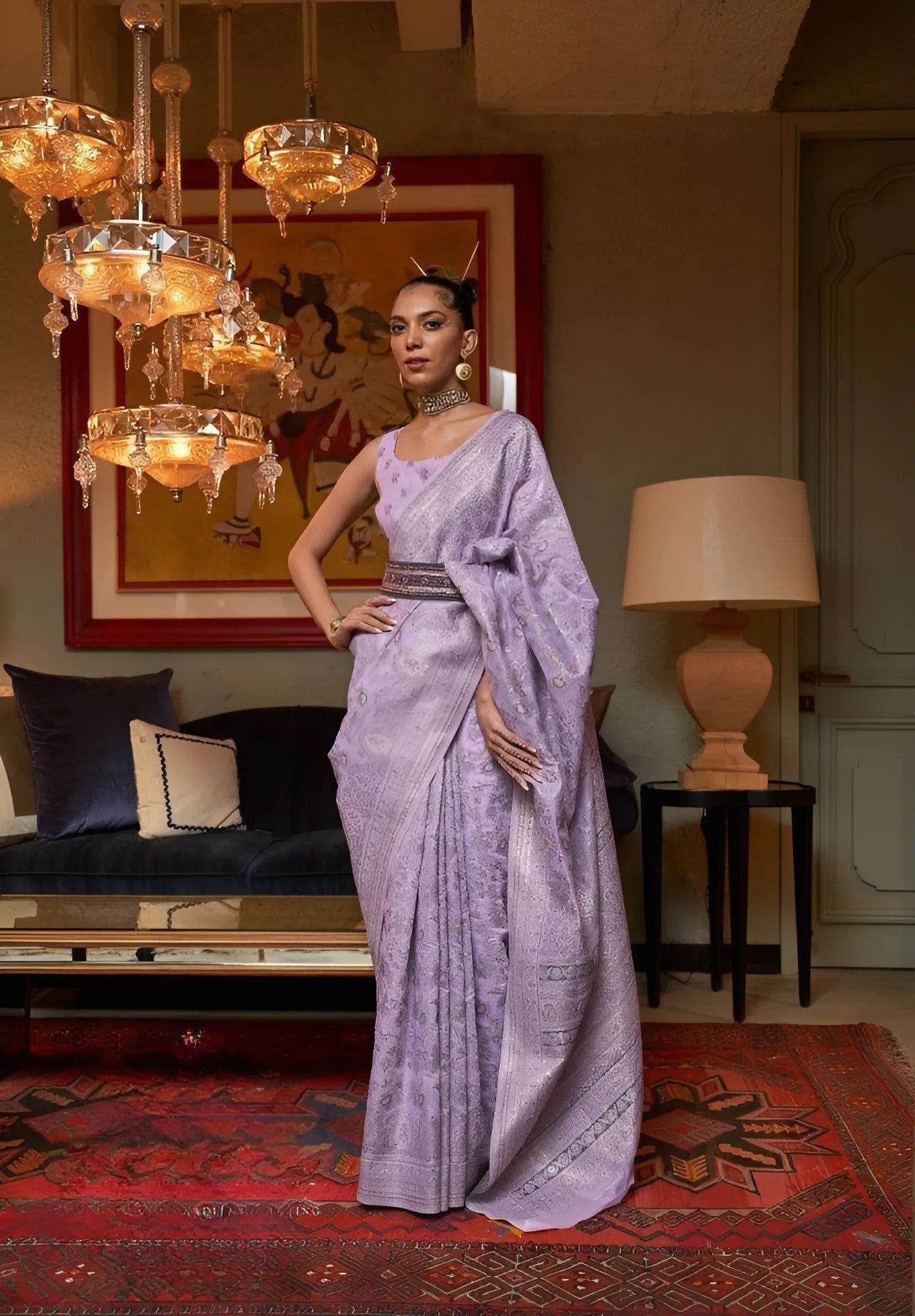 EKKTARA Saree For Women Lavender Colour Kashmiri Handloom Weaving Saree With Unstitched Blouse