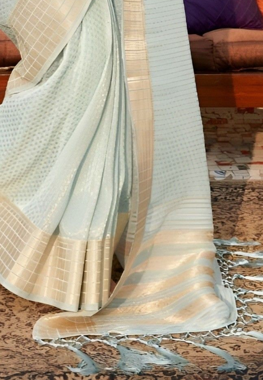 EKKTARA Saree For Women Ash Colour Shimmer Organza Zari Weaving Saree With Unstitched Blouse