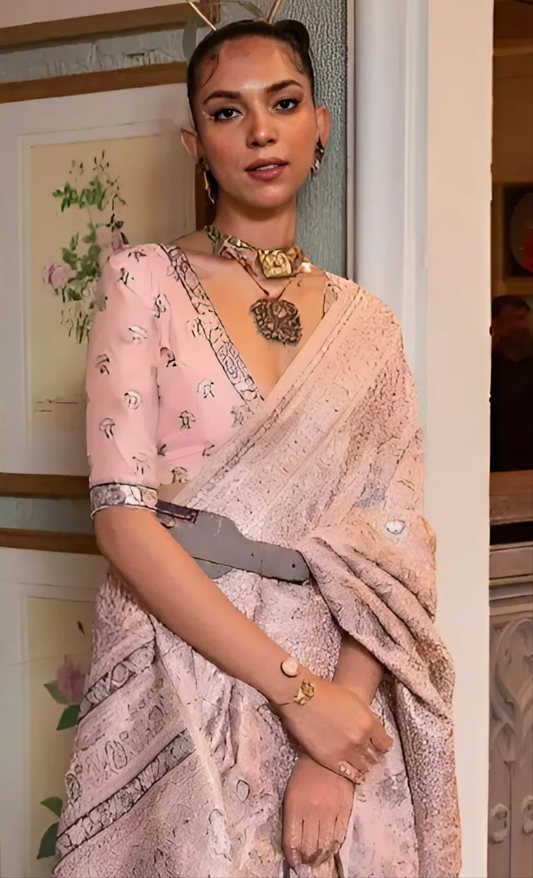 EKKTARA Saree For Women Baby Pink Colour Kashmiri Handloom Weaving Saree With Unstitched Blouse