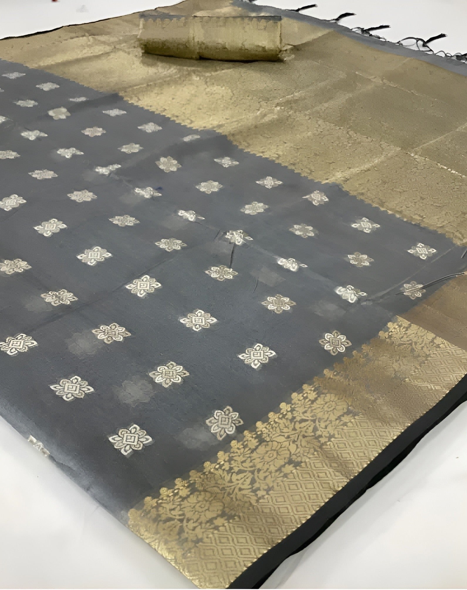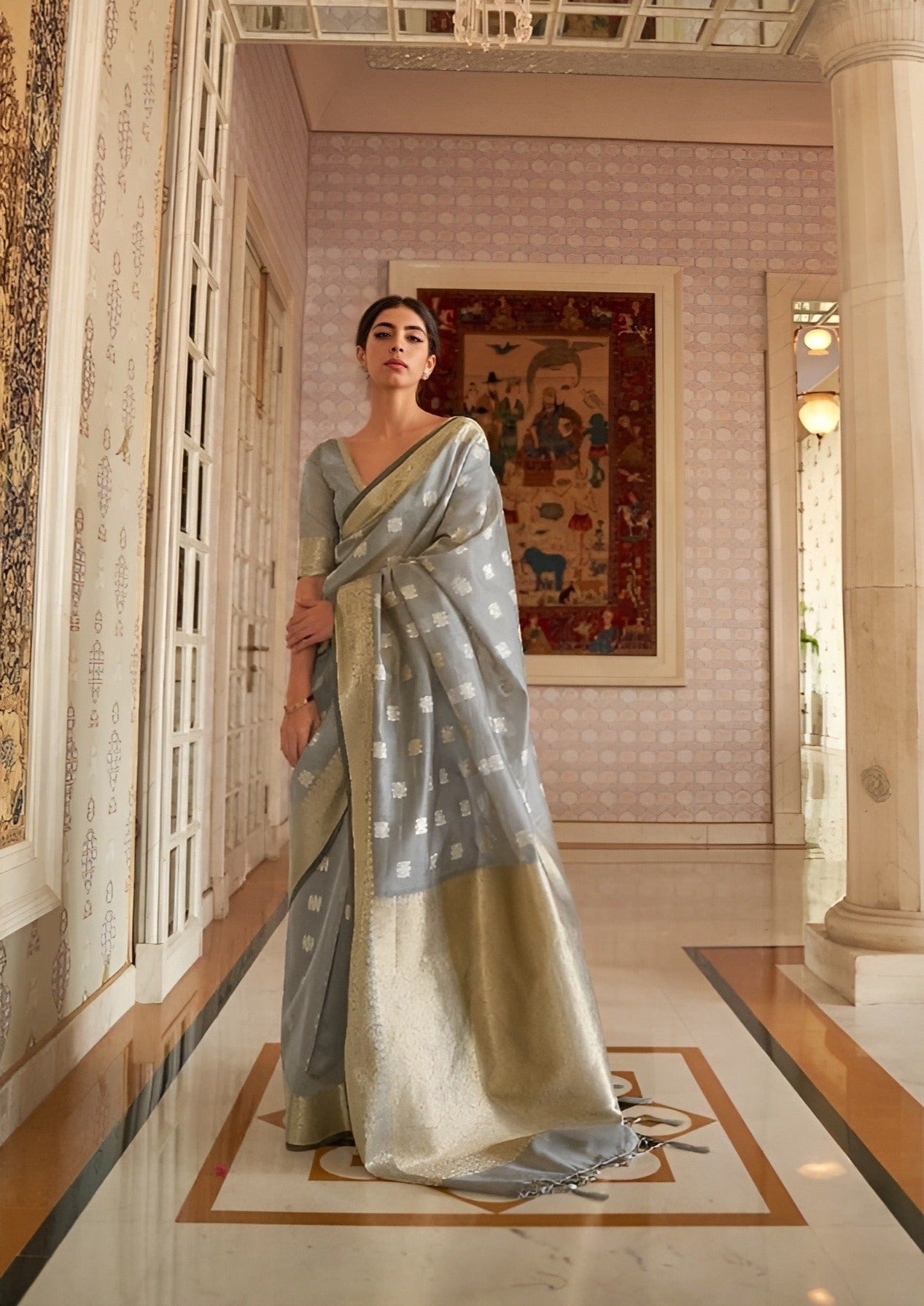 EKKTARA Saree For Women Dolphin Grey Zari Woven Linen Silk Saree