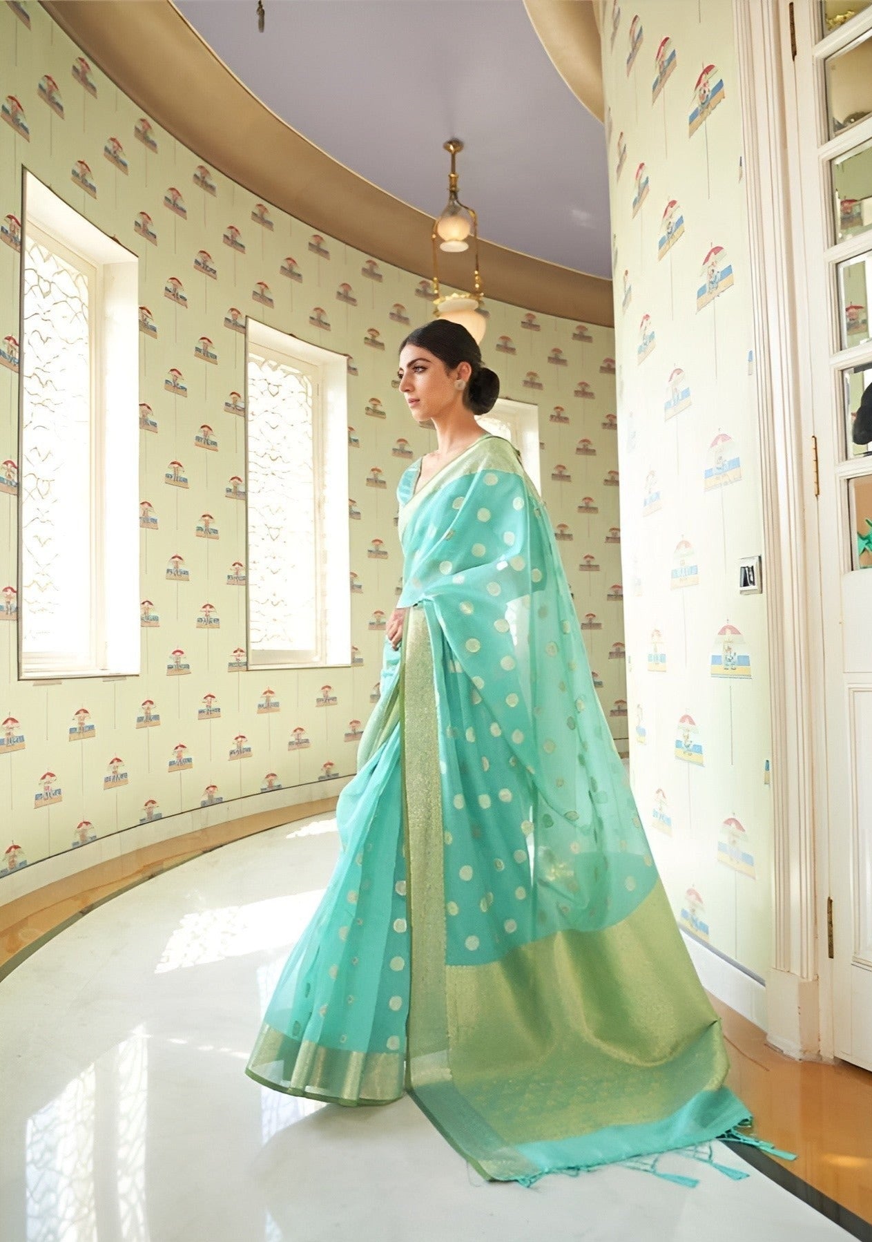 EKKTARA Saree For Women Sea Green Zari Woven Linen Silk Saree