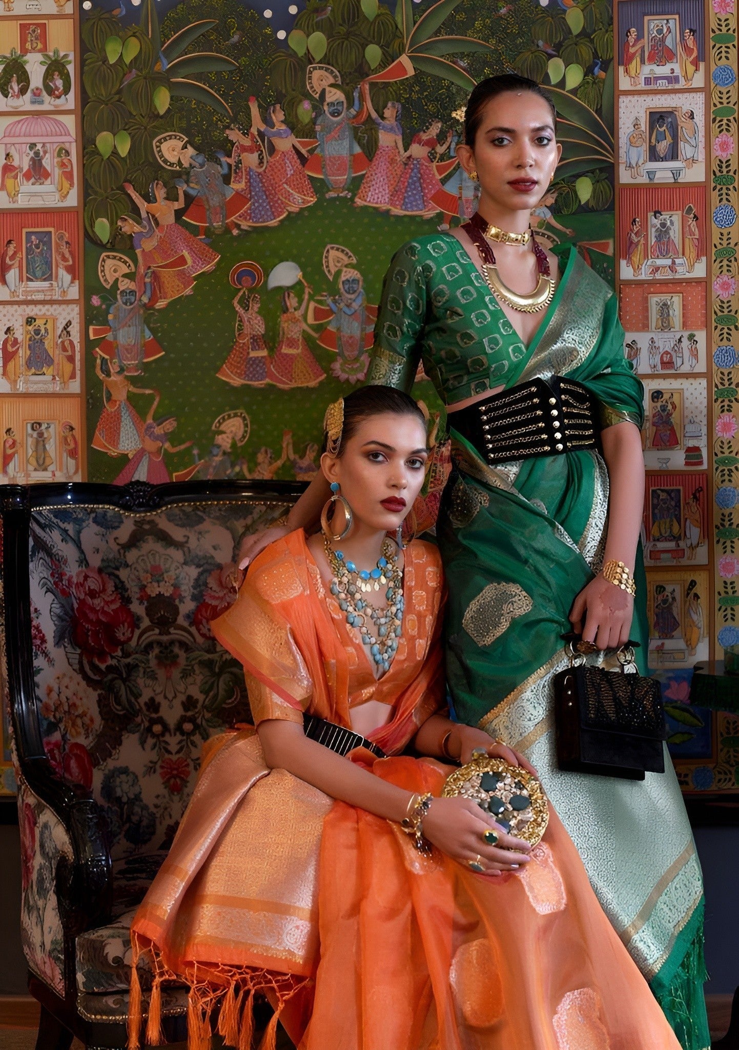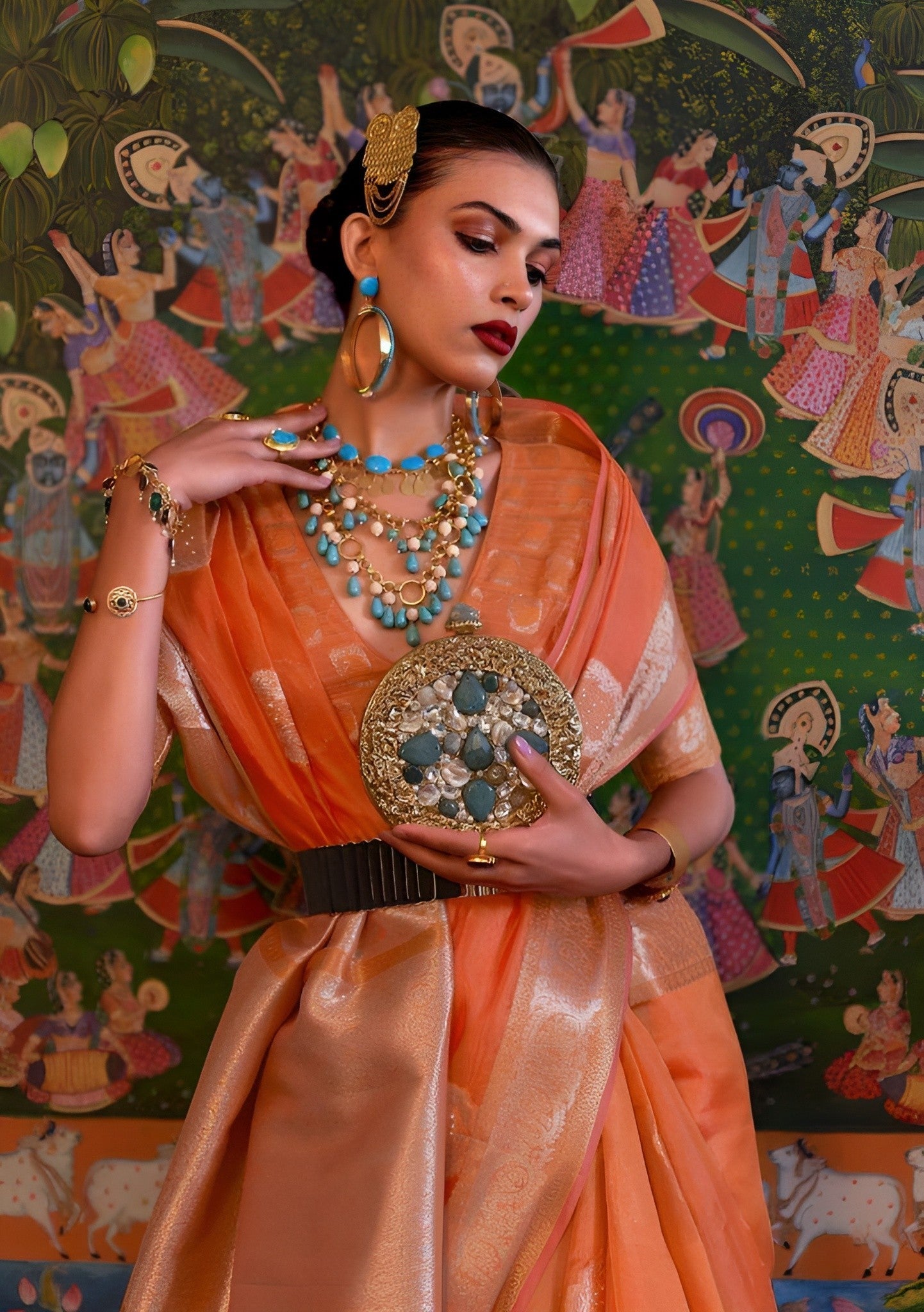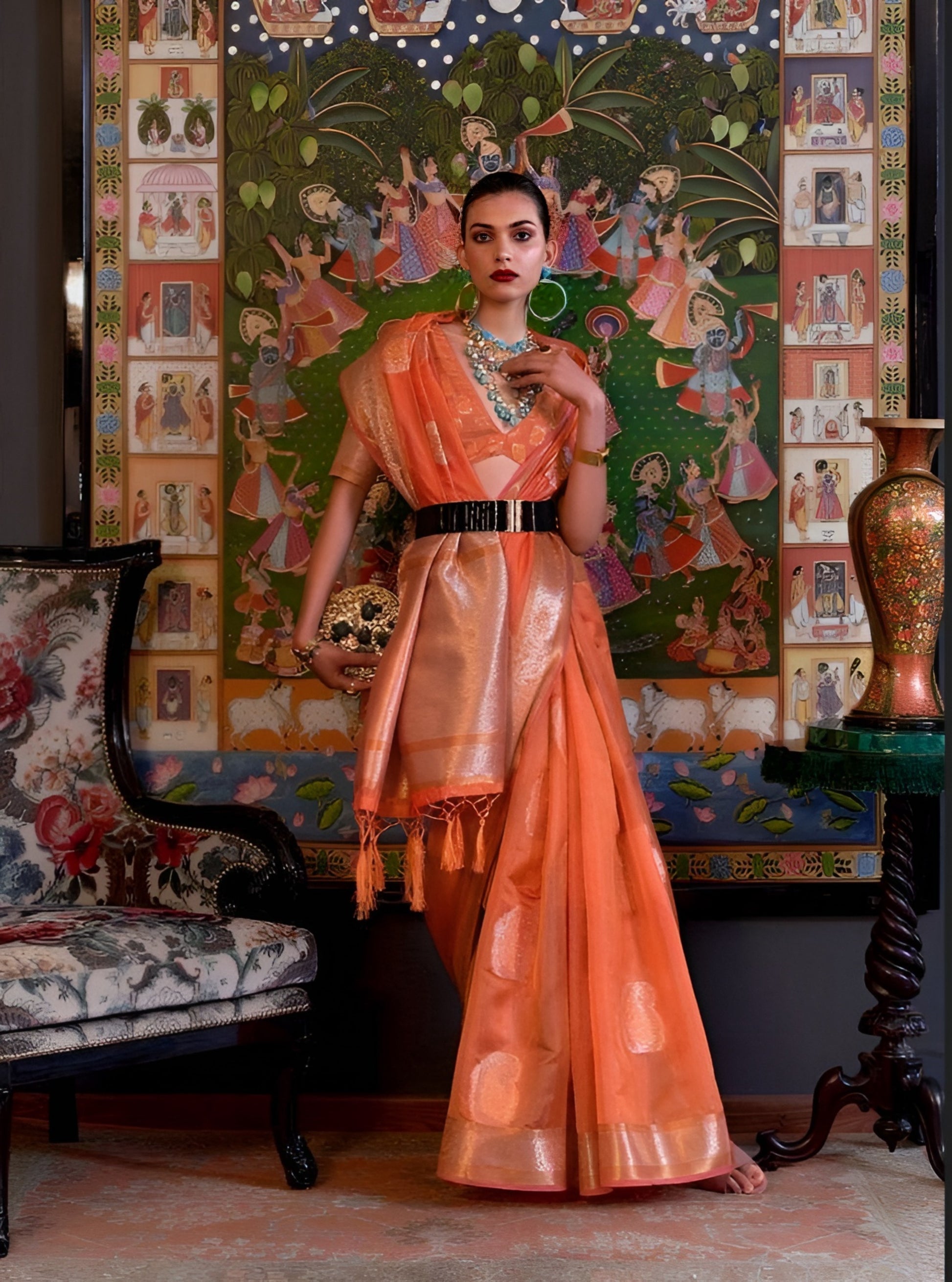 EKKTARA Saree For Women Orange Colour Dual Tone Organza Handloom Weaving Saree With Unstitched Blouse