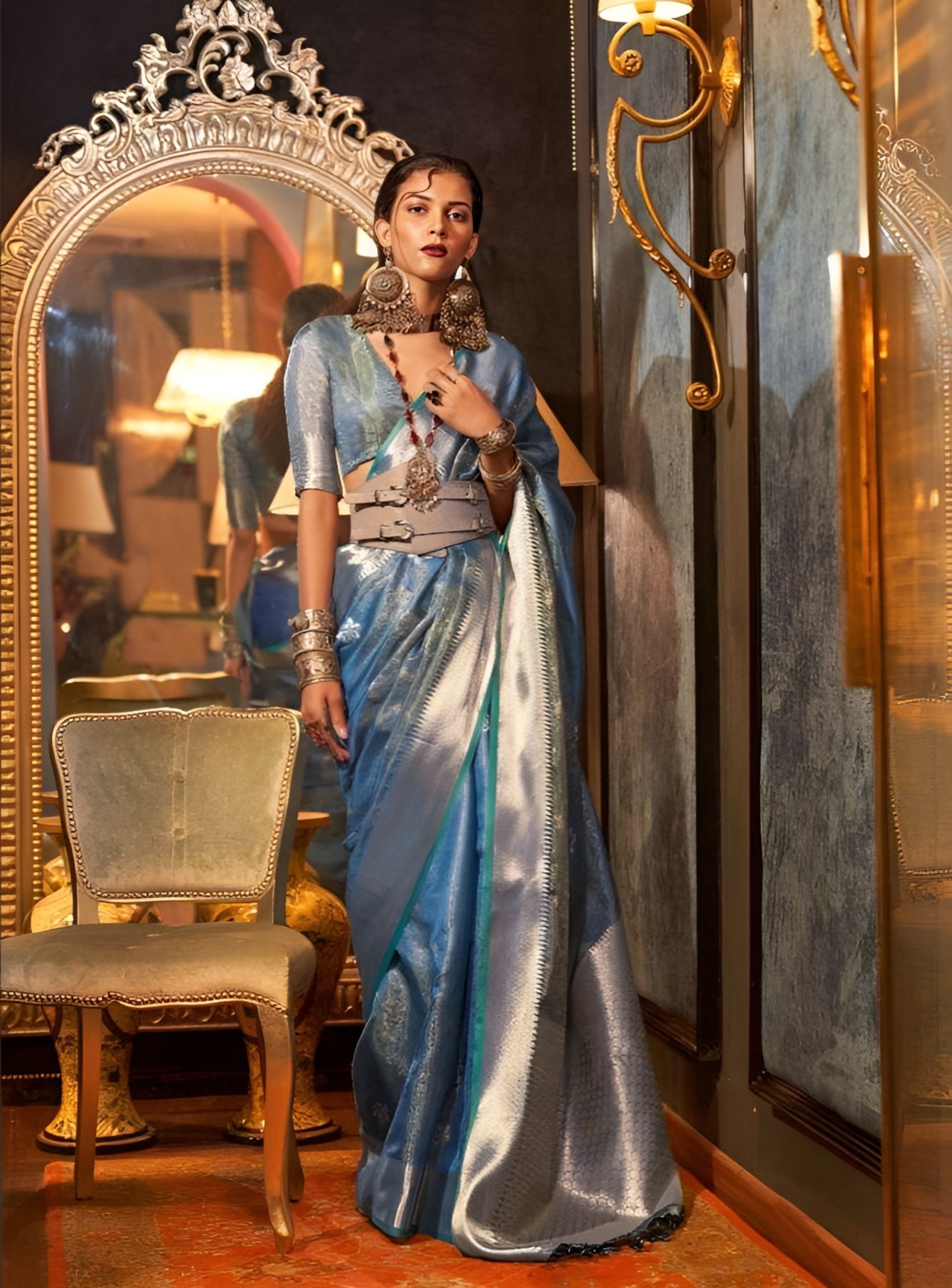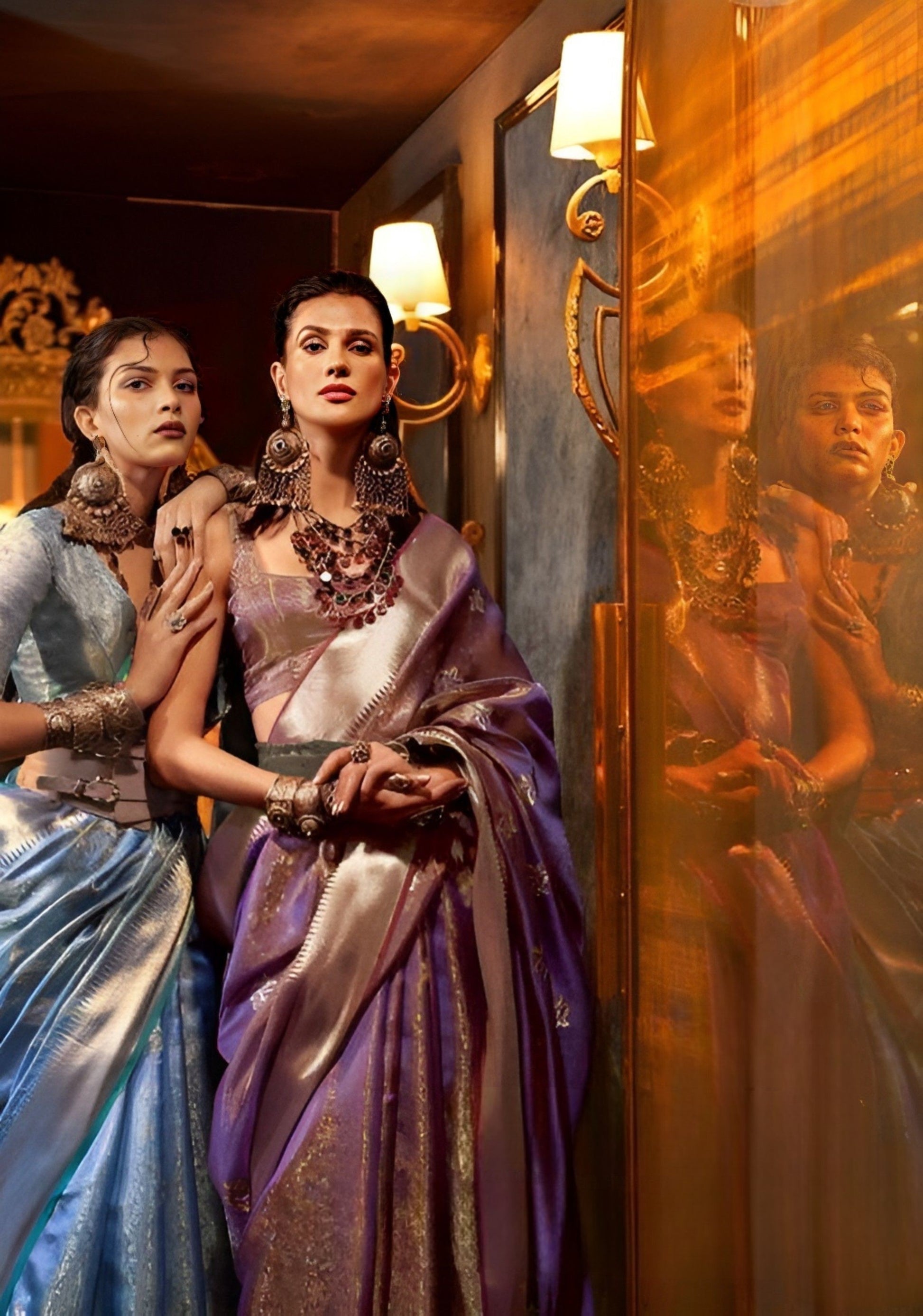 EKKTARA Saree For Women Pink Colour Two Organza Handloom Weaving Saree With Unstitched Blouse