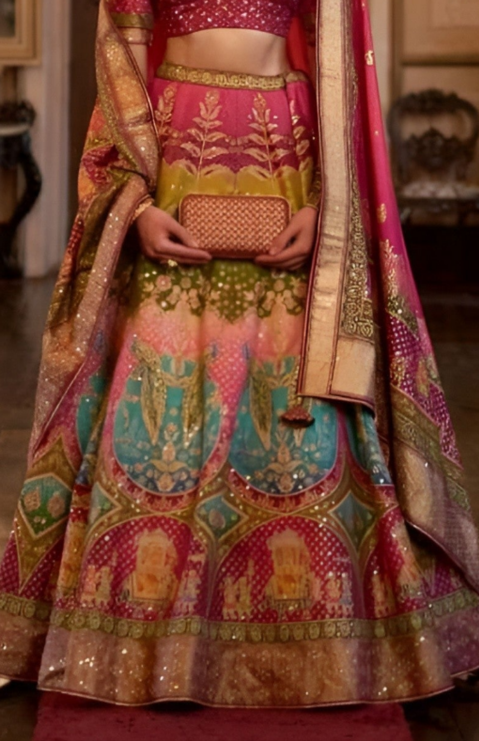 Lehenga Fabric : Smooth Silk With Sparkle Work