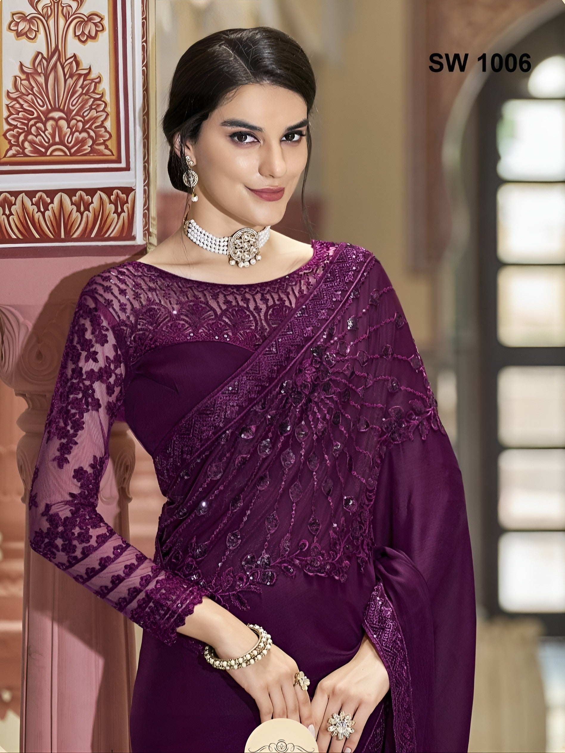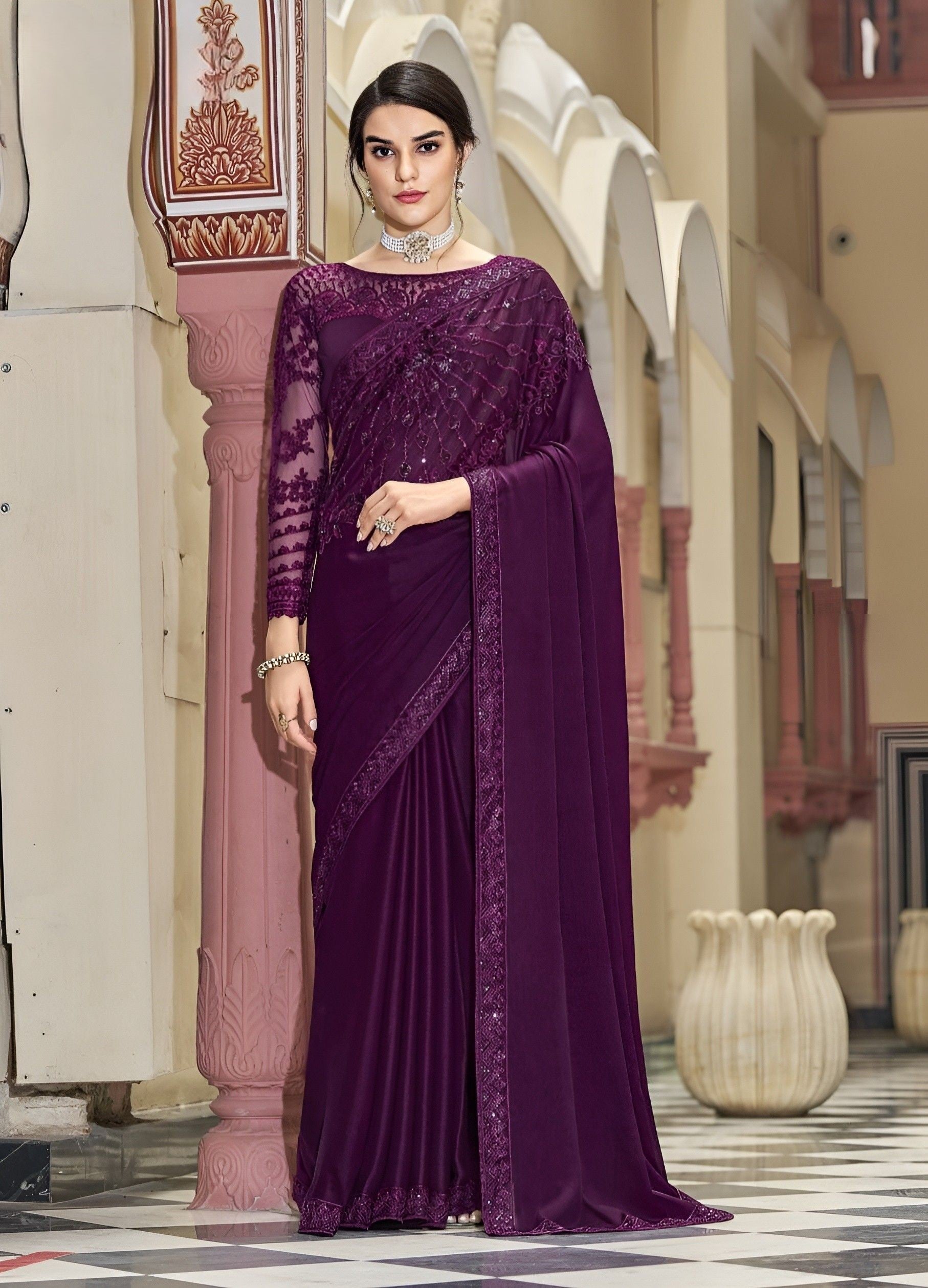 EKKTARA Saree For Women Wine Colour Silk Designer Satin Saree