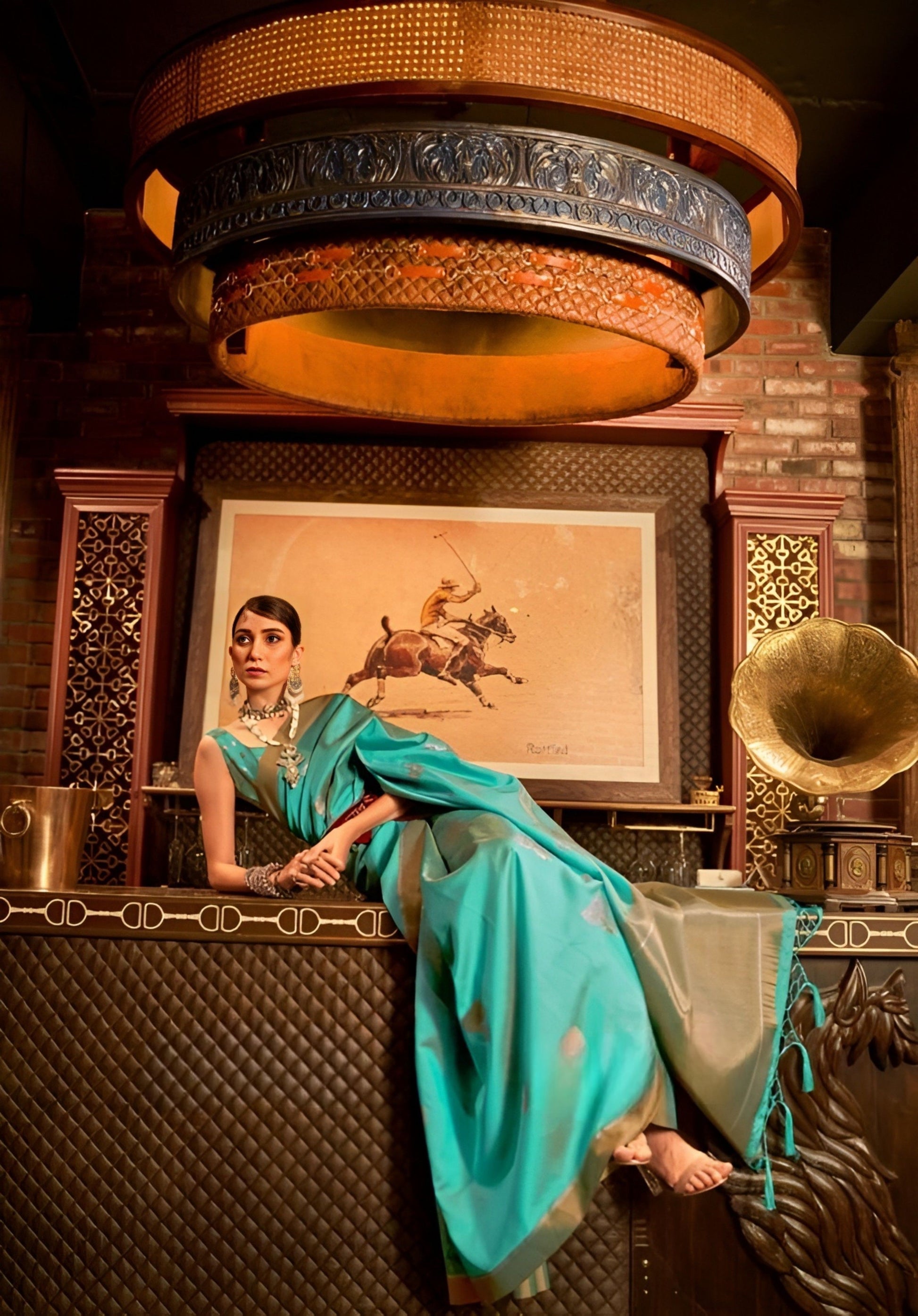EKKTARA Saree For Women Turquoise Silk Zari Handloom Weaving Saree