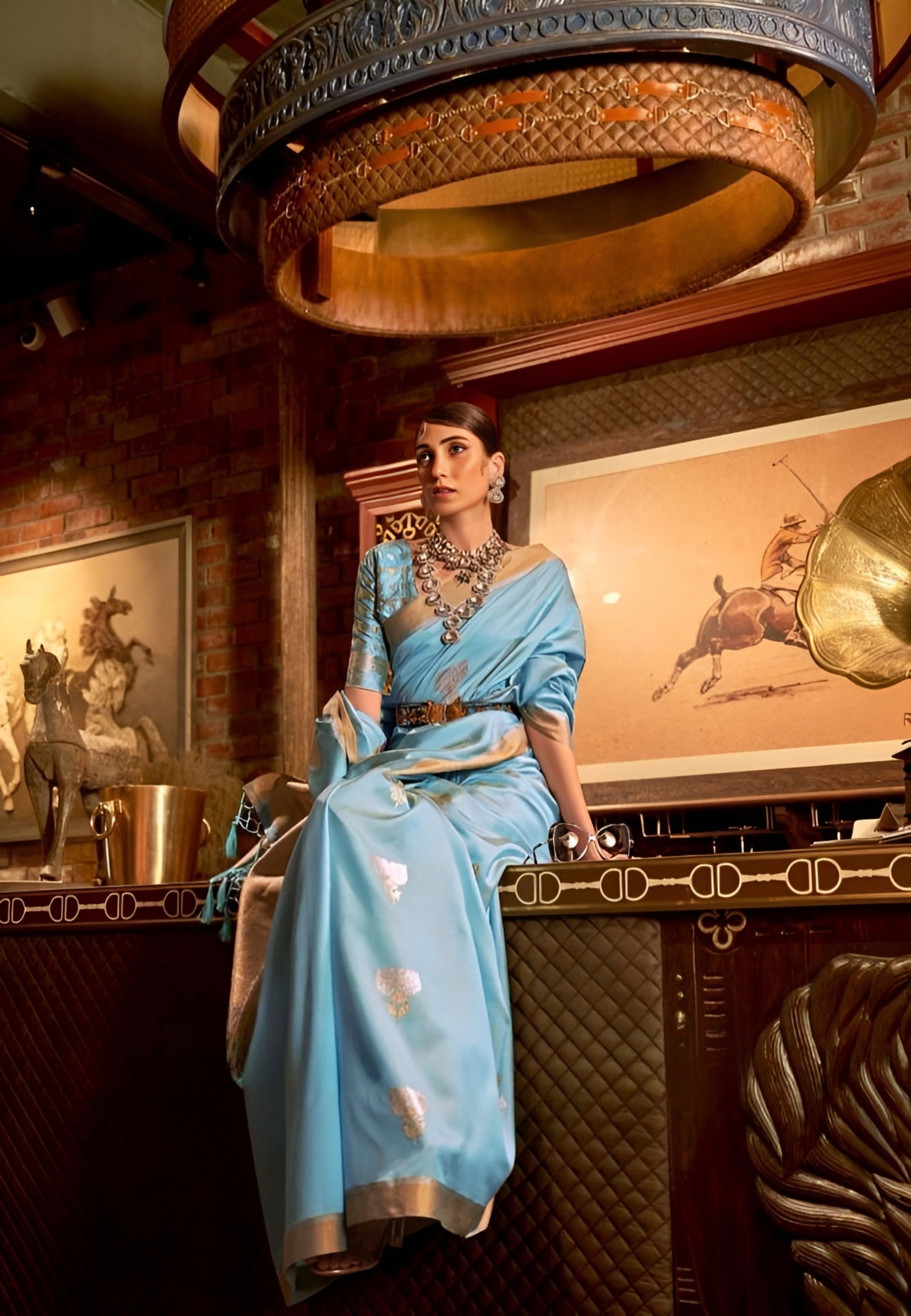 EKKTARA Saree For Women Sky Blue Silk Zari Handloom Weaving Saree