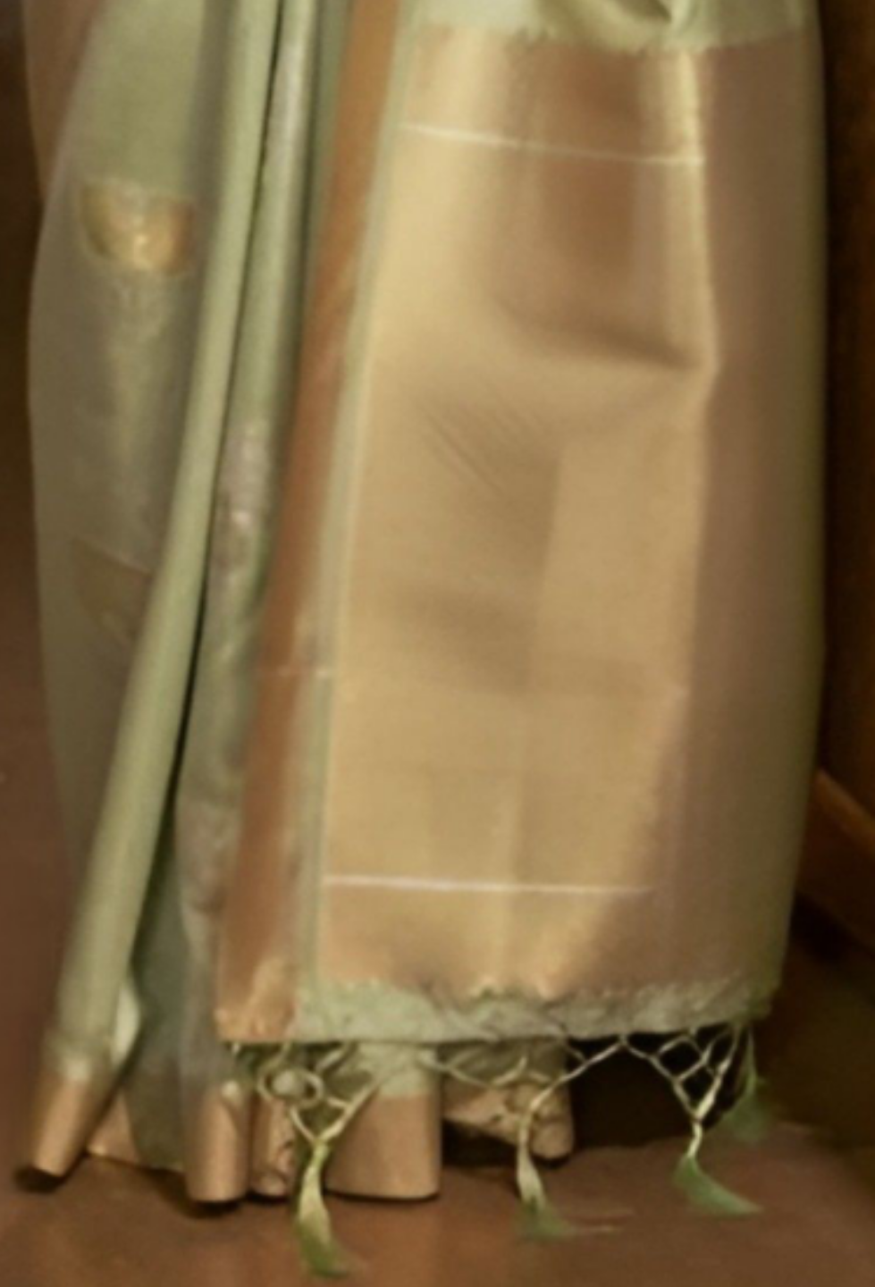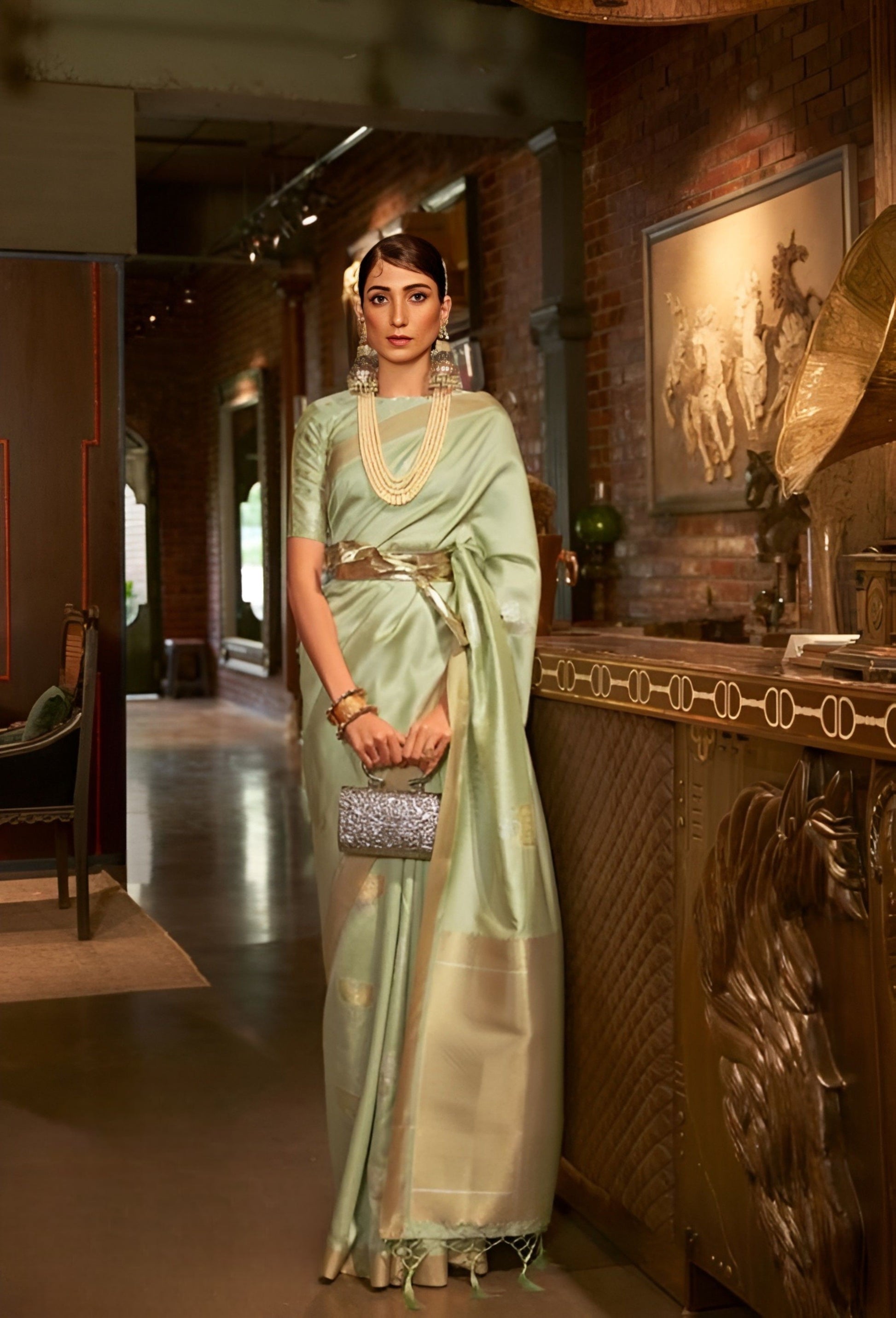 EKKTARA Saree For Women Light Pista Green Silk Zari Handloom Weaving Saree