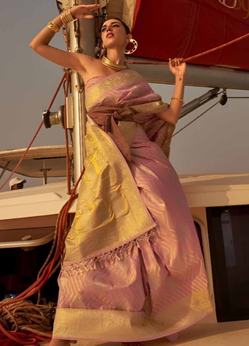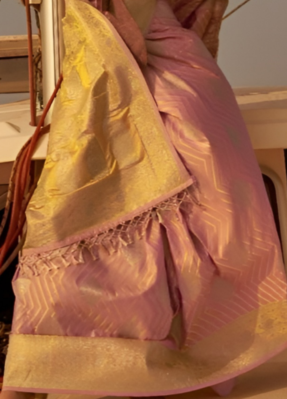 EKKTARA Saree For Women Blush PinkTwo Tone Handloom Weaving Satin Silk Saree