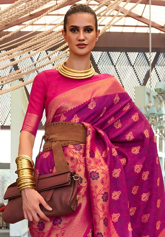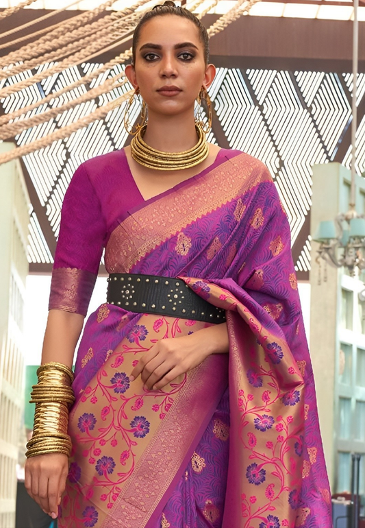 EKKTARA Saree For Women Purple Colour Silk Handloom Weaving Designer Saree With Unstitched Blouse