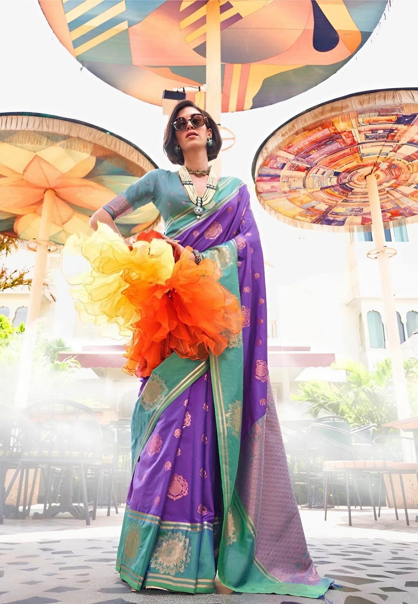 EKKTARA Saree For Women Purple Colour Two Tone Contrast Handloom Weaving Saree With Unstitched Blouse