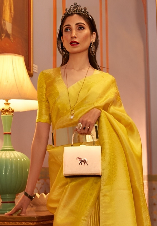 EKKTARA Saree For Women Yellow Colour Saree With Unstitched Blouse