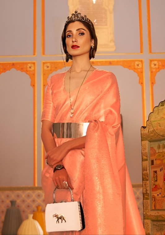 EKKTARA Saree For Women Light Orange Colour Saree With Unstitched Blouse