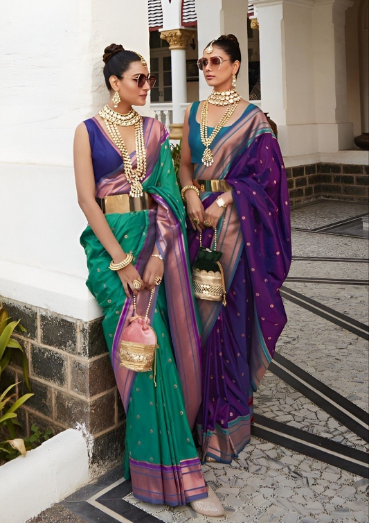 EKKTARA Saree For Women Purple Colour Peshwai Paithani Silk Saree With Unstitched Blouse