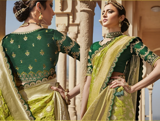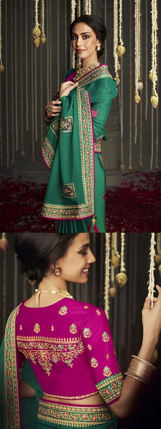 EKKTARA Saree For Women Green Designer Silk Celebrity Saree