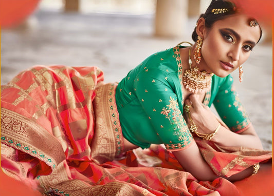 EKKTARA Saree For Women Emerald Green Designer Silk Saree