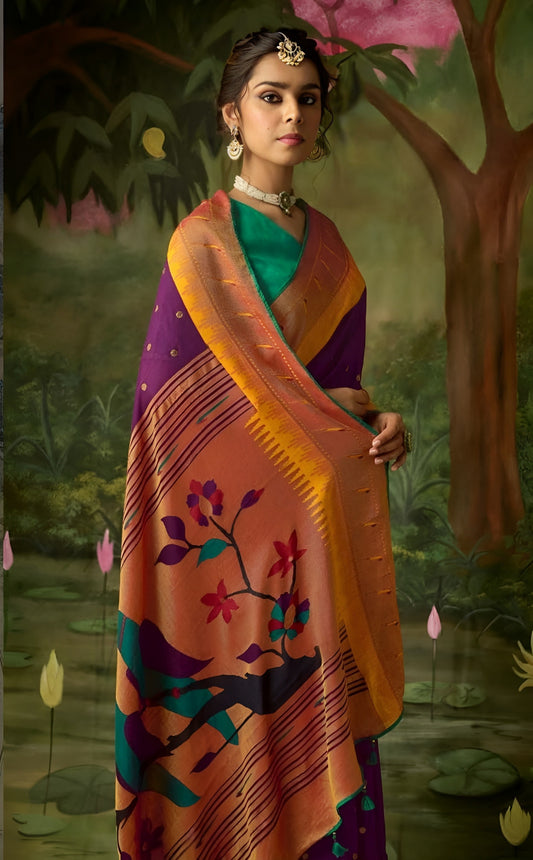 EKKTARA Saree For Women Purple Brasso Silk Designer Paithani Saree