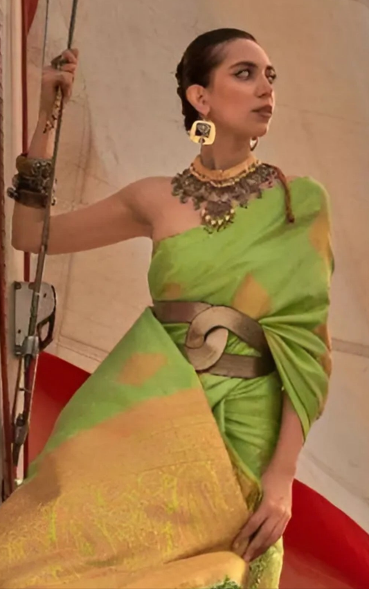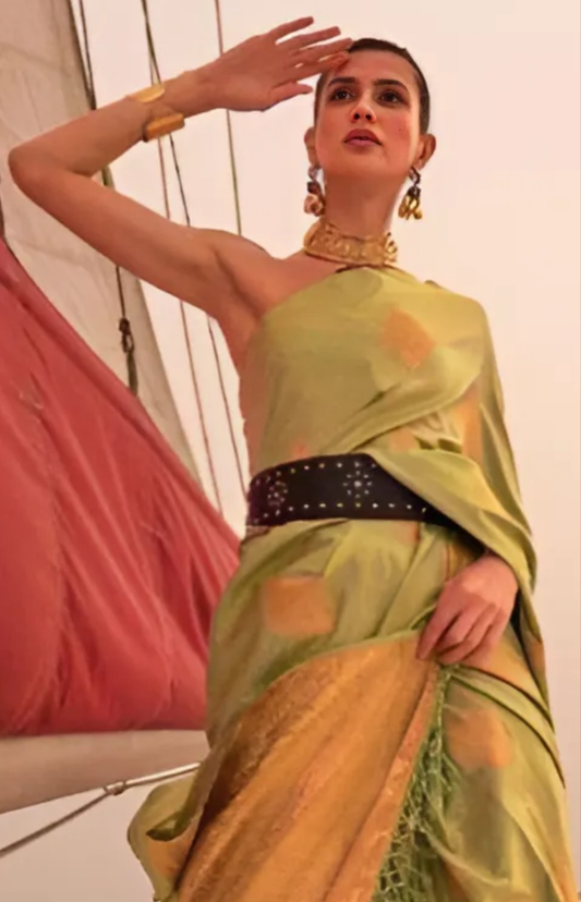 EKKTARA Saree For Women Lime Colour Satin Two Tone Handloom Weaving Saree With Unstitched Blouse