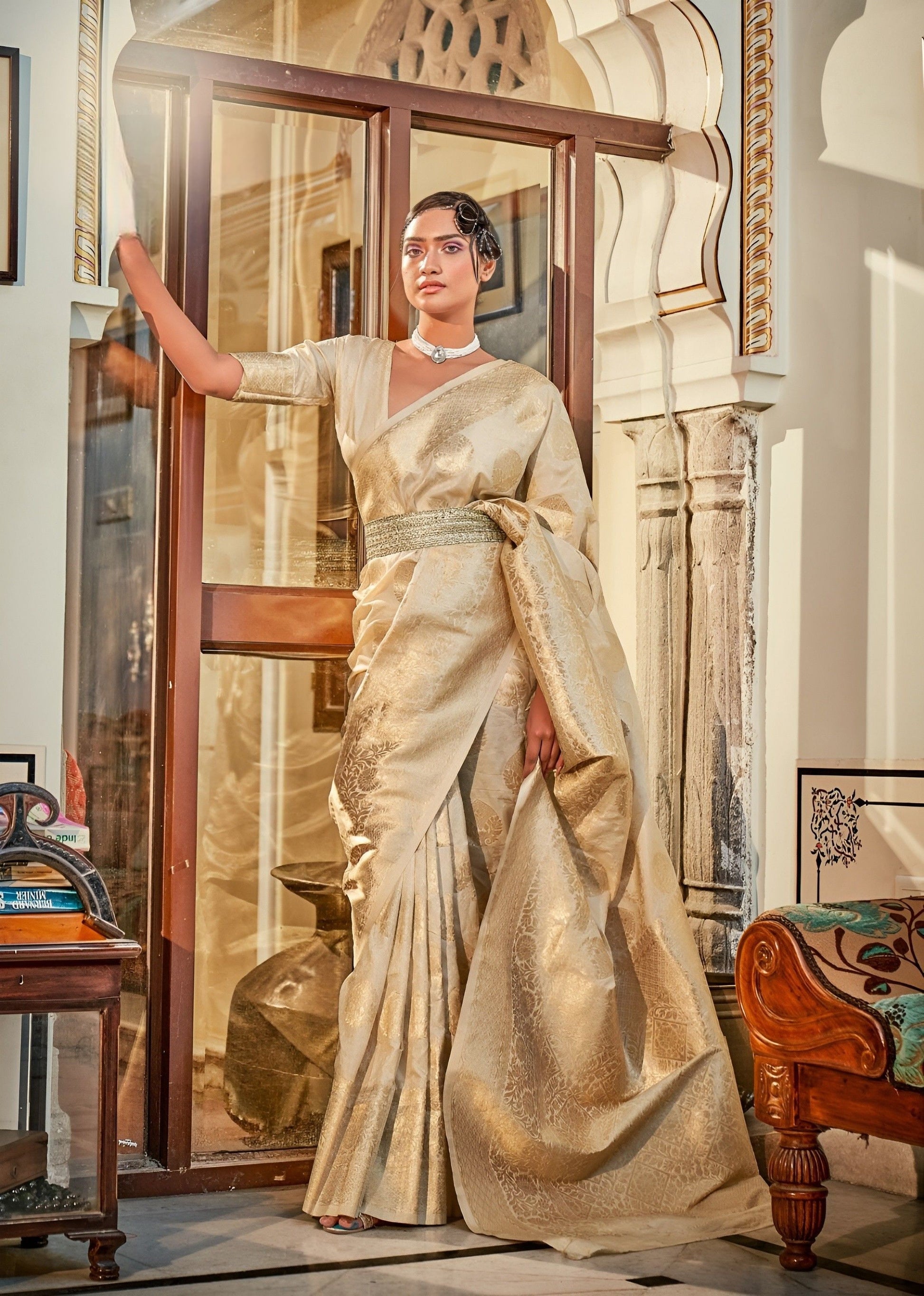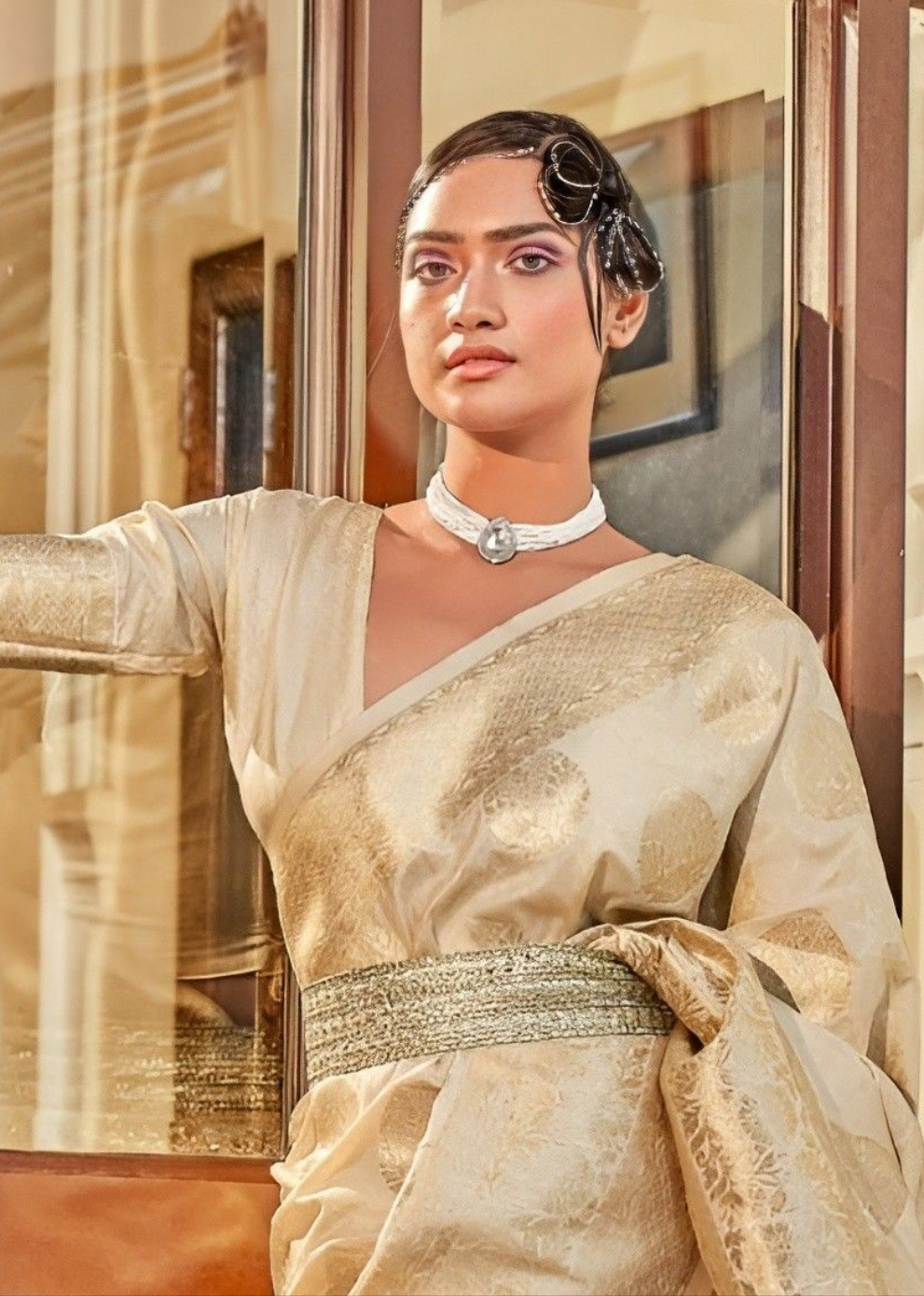 EKKTARA Saree For Women Golden Colour Banarasi Silk Zari Saree With Unstitched Blouse