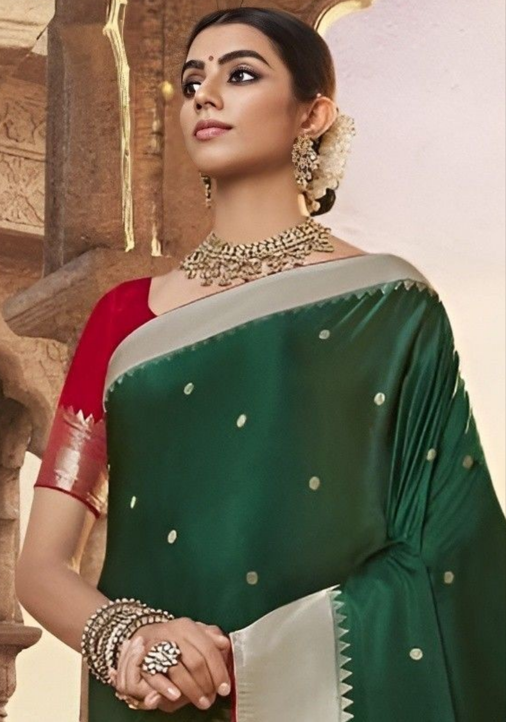 EKKTARA Saree For Women Pine Green Designer Satin Paithani Saree With Contrast Blouse