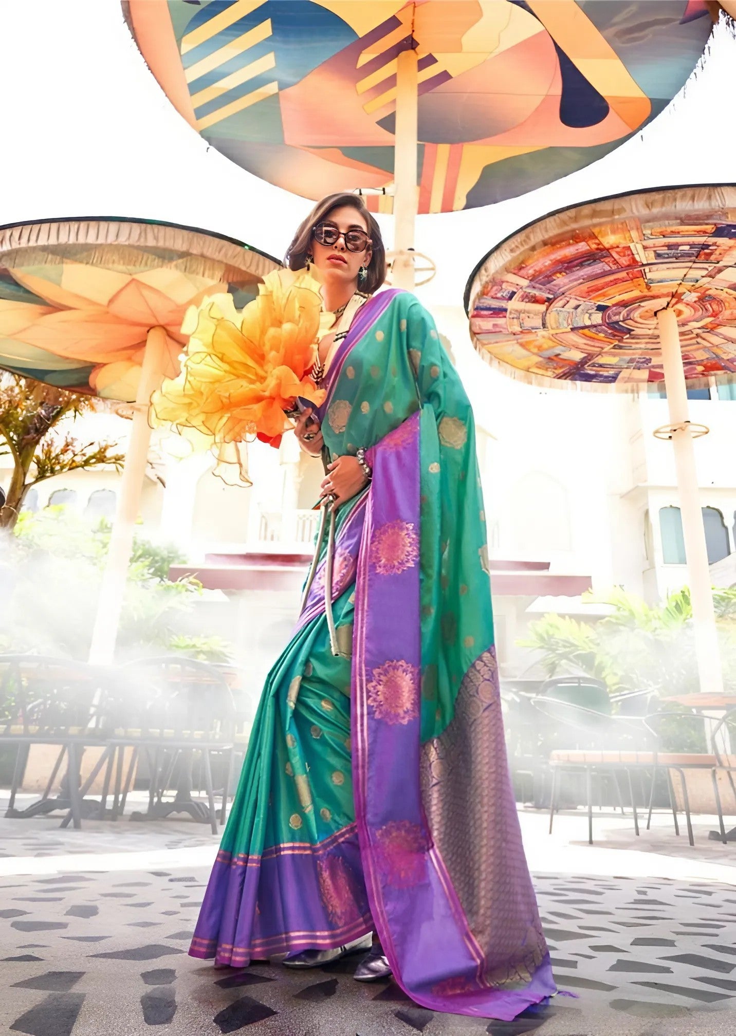 EKKTARA Saree For Women Green Colour Two Tone Contrast Handloom Weaving Saree With Unstitched Blouse