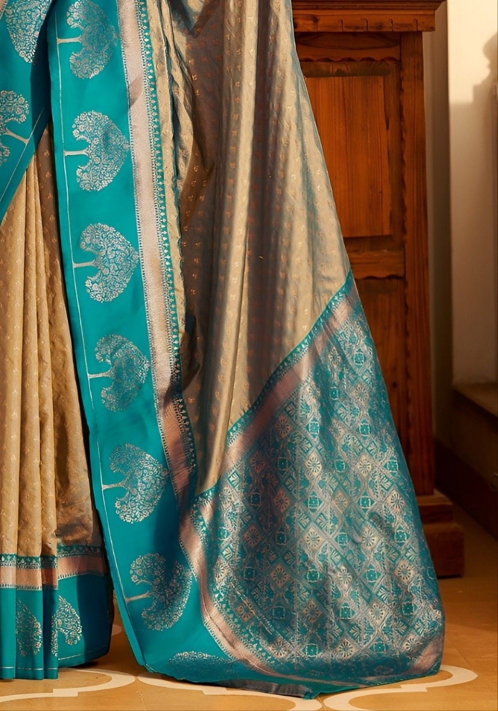EKKTARA Saree For Women Golden Colour Banarasi Silk Saree With Unstitched Blouse