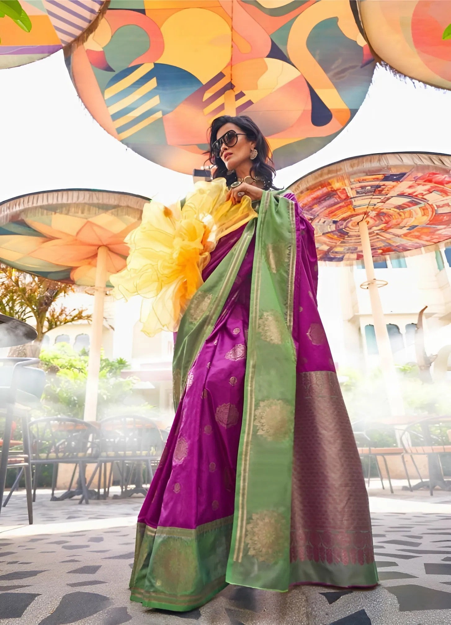 EKKTARA Saree For Women Magenta Purple Colour Two Tone Contrast Handloom Weaving Saree With Unstitched Blouse
