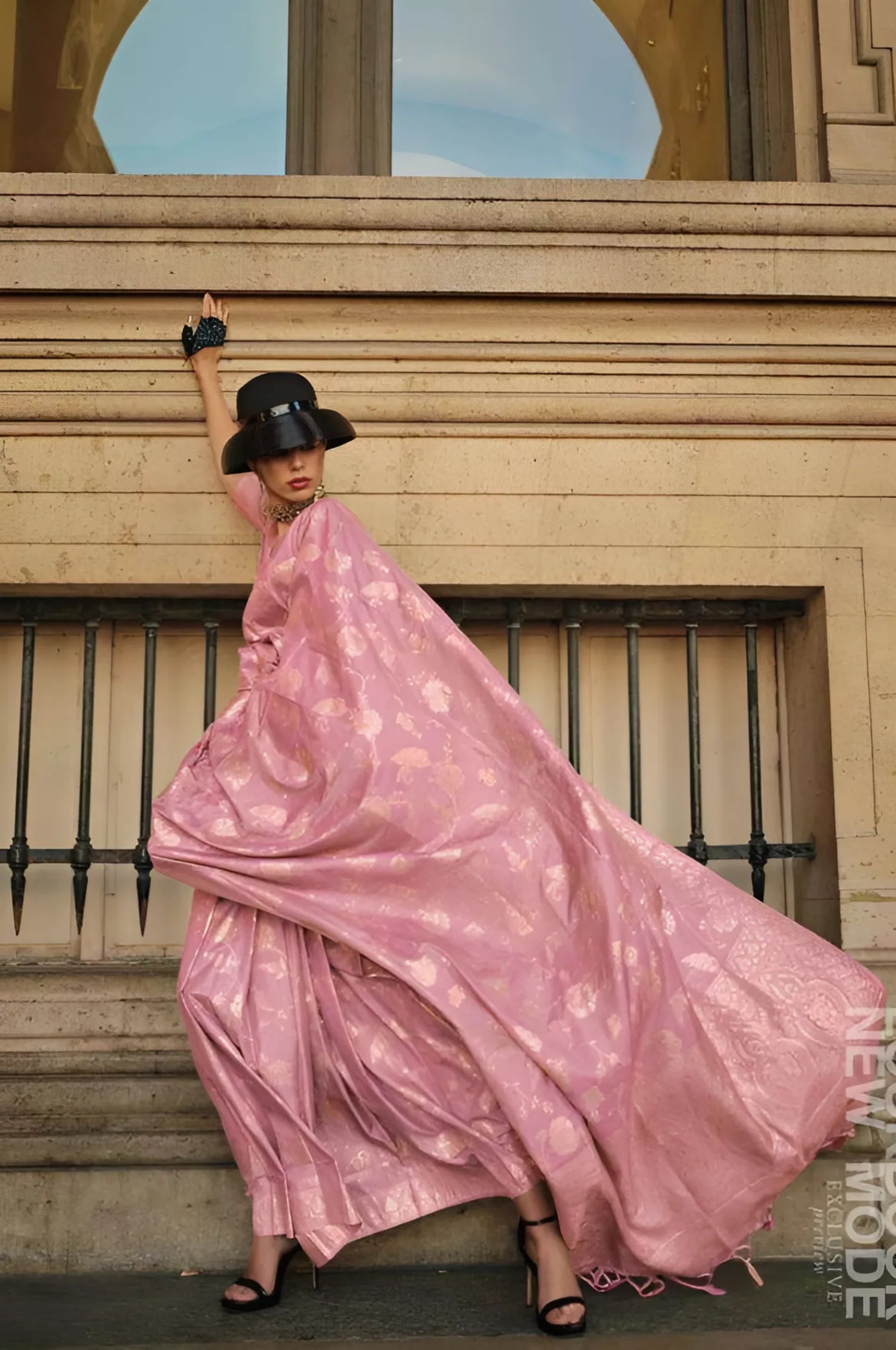 EKKTARA Saree For Women Light Pink Colour Silk Handloom Weaving Saree With Unstitched Blouse