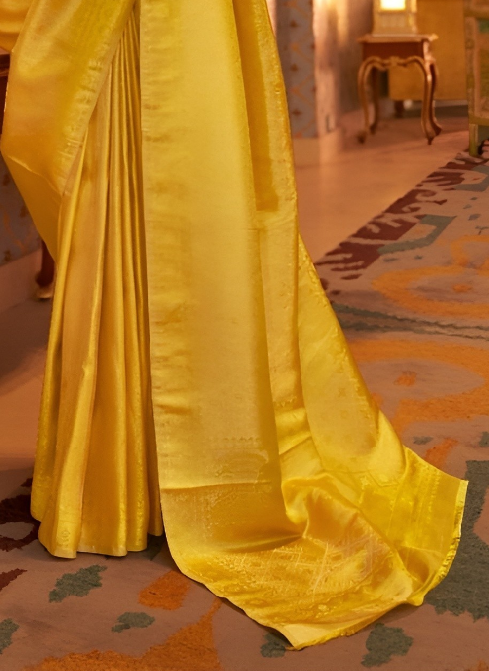 EKKTARA Saree For Women Yellow Colour Saree With Unstitched Blouse