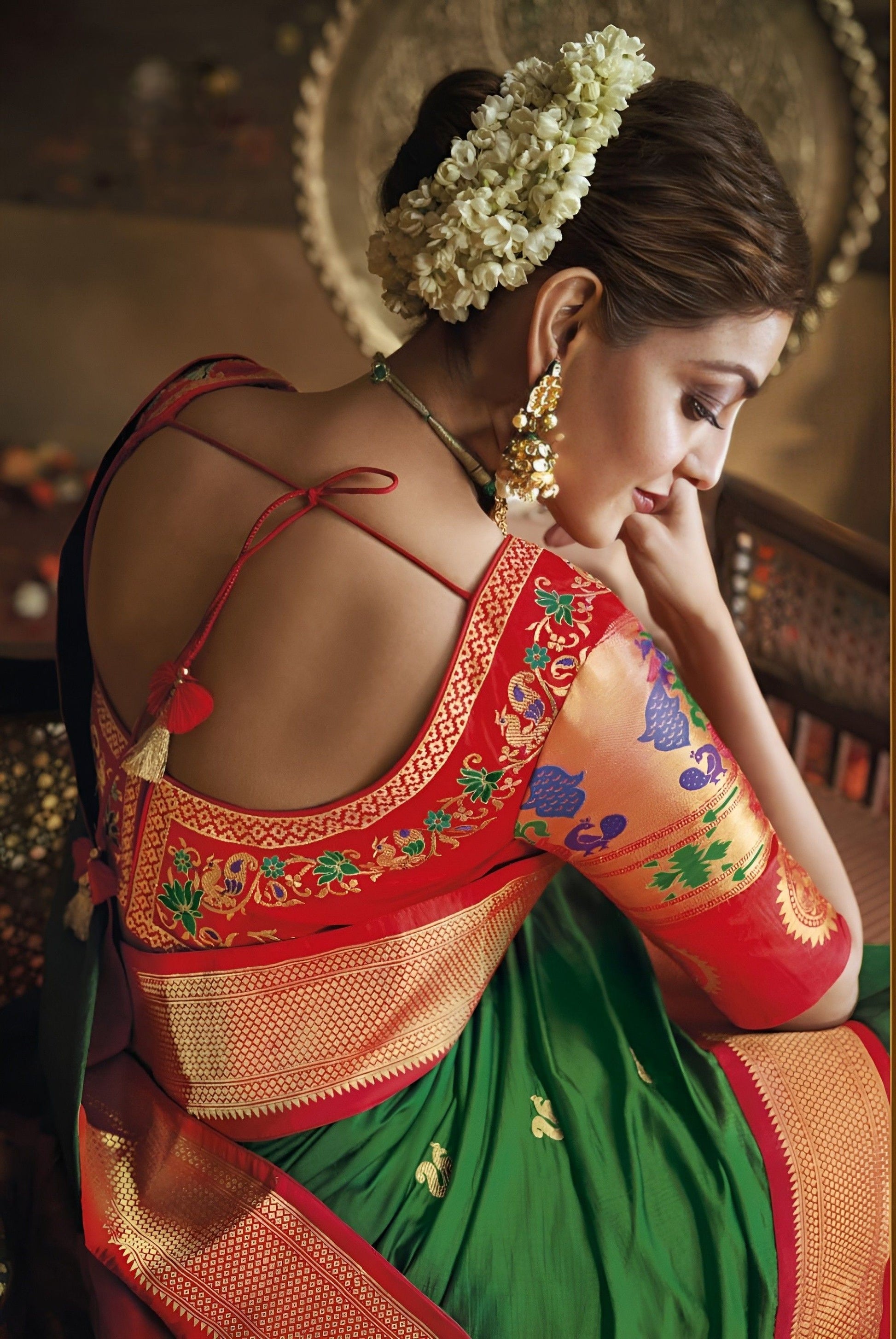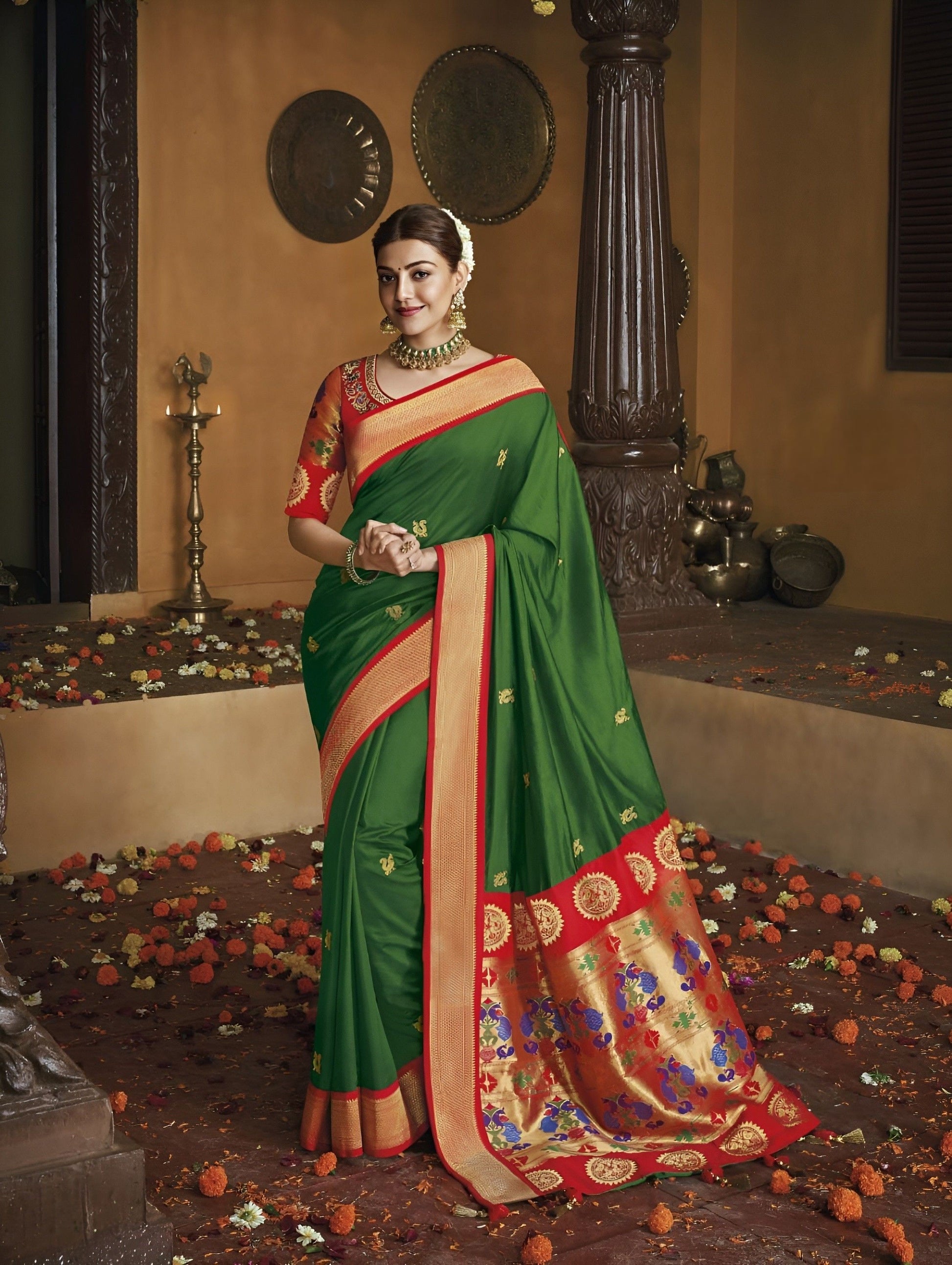 EKKTARA Saree For Women Green Colour Pure Silk Paithani Saree With Unstitched Blouse Celebrity Collection