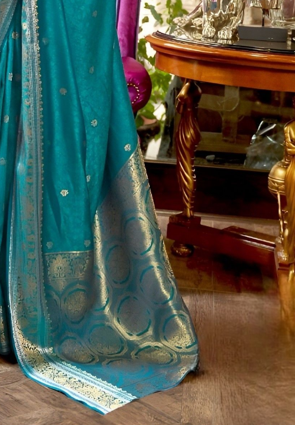 EKKTARA Saree For Women Ocean Blue Handloom Silk Weaving Saree