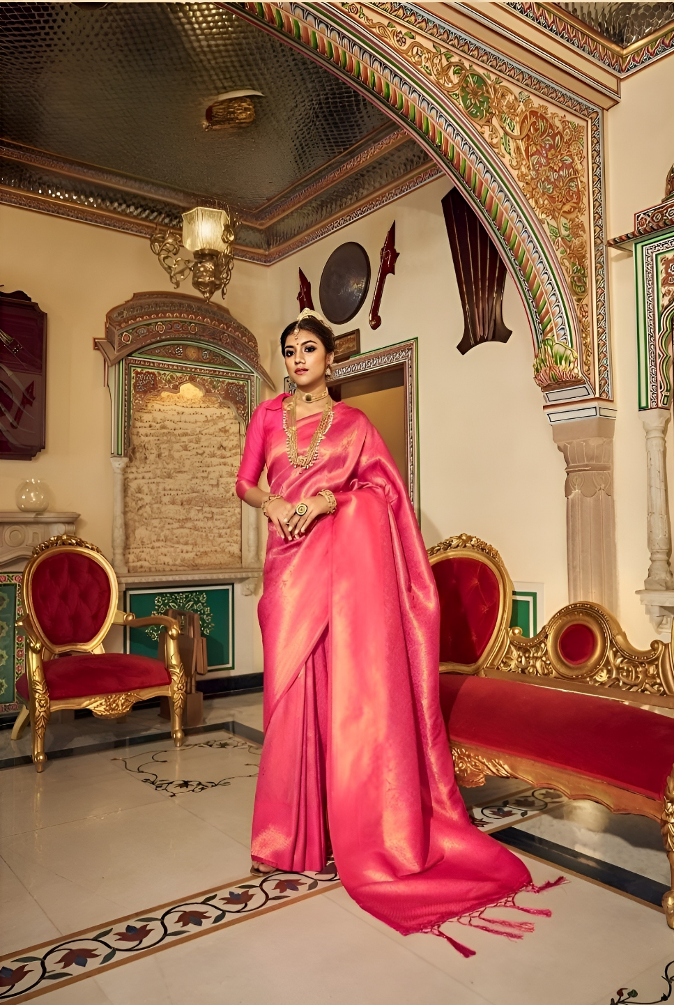 EKKTARA Saree For Women Fuchsia Pink Kanjivaram Saree