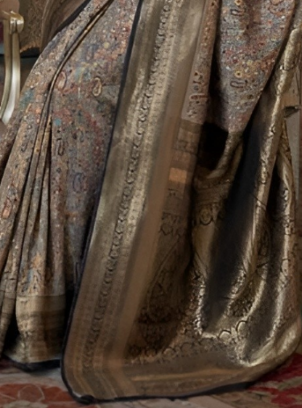 EKKTARA Saree For Women Golden Colour Kashmiri Chaap Handloom Weaving Silk Saree With Unstitched Blouse